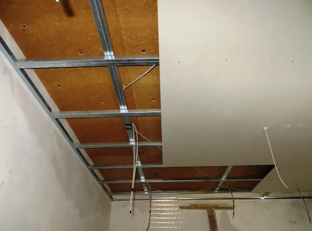 In genere il controsoffitto in cartongesso è realizzato con delle lastre di cartongesso che sono fissate al solaio tramite una struttura metallica e tra il cartongesso e il solaio c’è un’intercapedine d’aria.