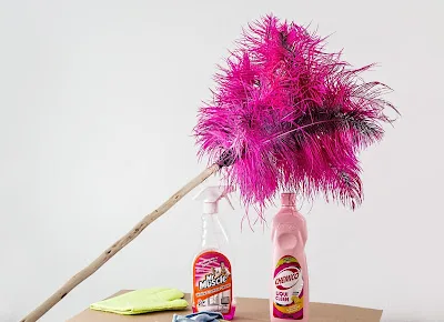 Con l’aiuto di un piumino con bastone allungabile o di un semplice spazzolone avvolto in un panno di micro-fibra (ottima per catturare la polvere) cominciate a spolverare energicamente il soffitto e poi le pareti, andando bene anche negli angoli. SIATE SCRUPOLOSI.
