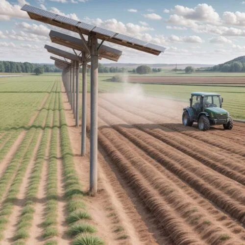 E’ la stessa cosa del fotovoltaico tradizionale, solamente che i pannelli invece di essere collocati sopra i tetti delle abitazioni o degli edifici sono collocati a terra sul campo di terra. In questo modo i contadini oltre a coltivare i terreni sono in grado di produrre energia pulita per la propria azienda e per immetterla nel mercato.