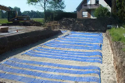 | Sistema per estrazione di energia geotermica a sonde orizzontali: questo tipo di impianto richiede una superficie libera piuttosto ampia. Fonte: dpa/Bundesverband Waermepumpe |