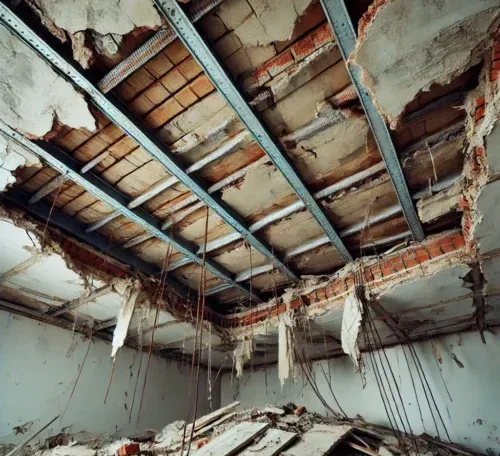 - Distacchi di intonaco: Caduta di frammenti di intonaco o piccole parti del solaio è un segnale evidente di sfondellamento in corso.