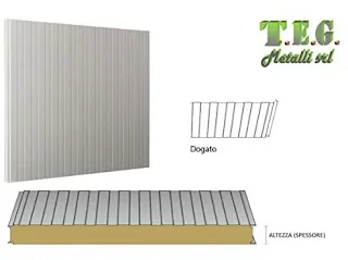 I pannelli sandwich sono pannelli costituiti da due fogli di lamiera di acciaio zincato preverniciato, irrigiditi da leggere nervature, tra i quali viene iniettato materiale termocoibente (resine poliuretaniche), che espandendosi aderisce alle lamiere e forma un pannello di grande leggerezza e di buona resistenza a flessione. Le due lamiere sono infatti rese solidali dalla schiuma interna che le unisce saldamente e, nel contempo, conferisce all’insieme buone caratteristiche di isolamento termico.