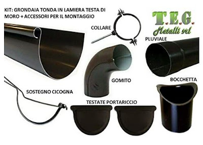 - Canali di gronda di lamiera zincata e verniciata, rame, acciaio ino;
